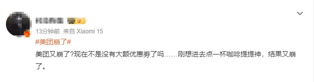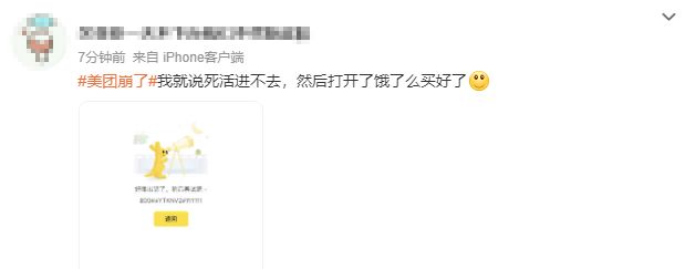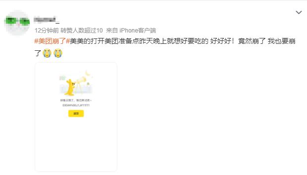 4月11日16时,“美团崩了”词条登上微博热搜,广东、陕西等地多名网友发帖称美团APP无法点外卖,有美团员工称内网系统无法使用,美团商家端、骑手端也出现异常。