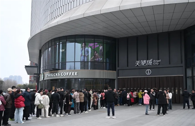 胖东来天使城店1号门前,顾客排起长队等候入场。河南日报全媒体记者 朱哲 摄